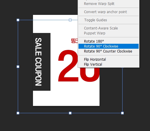 우클릭을 눌러 Rotate 90도 Clockwise [ 시계방향으로 90도 회전 ]를 눌러줍니다